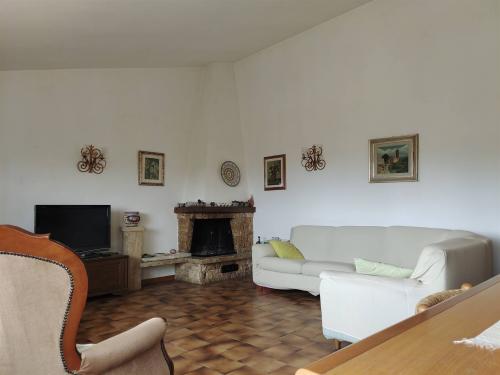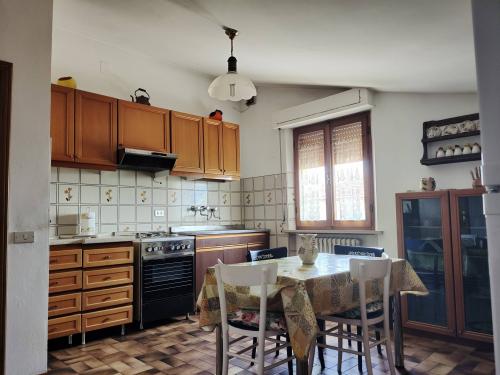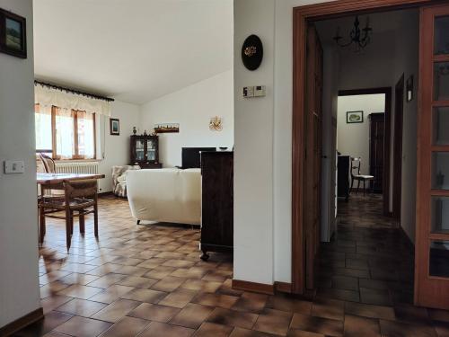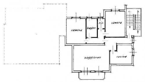 Entering from the external staircase, we have a small hallway that takes us to the large living room with fireplace and terrace, the kitchen is instead a separate environment as is typical of the buildings of this period.