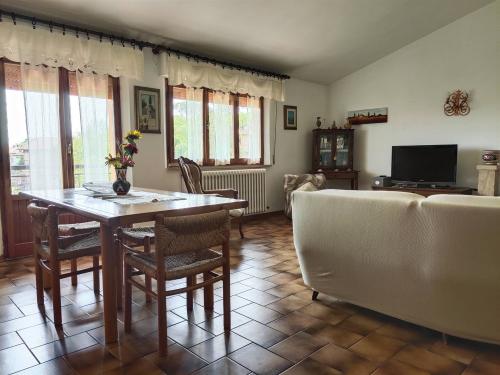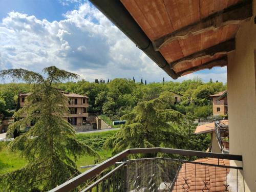 Montefollonico - Siena - Tuscany - in the residential area a few steps from the historic center, an apartment on the third and top floor of a building dating back to the late seventies is for Sale, with a small garden and garage and cellar on the ground floor.