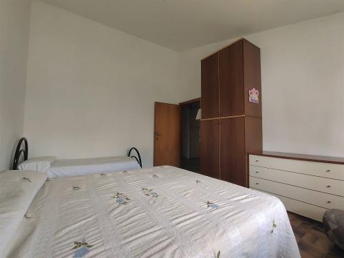 The sleeping area consists of two double bedrooms, a bathroom with tub and window, two closets.