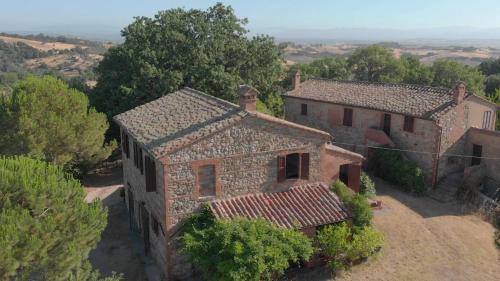 Montefollonico - tra Montepulciano e Pienza , ho il piacere di presentare questa meravigliosa proprietà composta da due casali in pietra di antiche origine dalla classica forma rettangolare .I due casali posti sulla sommità di una collina hanno l'invidiosa posizione di poter spaziare lo sguardo dalla Valdichiana alla valle verso Montepulciano. La collina per oltre tre ettari , in proprietà esclusiva , consente a questo Casale di godere di privacy e tranquillità.Il primo Casale si sviluppa su due livelli : al piano terreno abbiamo dei bellissimi locali con soffitti a volta attualmente destinati a cantina e rimessa attrezzi , oltre che ad un garage.Il piano primo è invece composto da una cucina abitabile con camino , da una scala si accede ad un ulteriore salotto con camino con un ulteriore accesso esterno , tre camere da letto ed un bagno .Questo Casale è stato oggetto di ristrutturazione alla fine degli anni Ottante .Il secondo Casale si sviluppa anch'esso su due livelli ed è composto da due unità abitative ed è completamente da ristrutturare .SERVIZI luce acquedotto, riscaldamento a gpl USO E POTENZIALITA'La sua particolare location rende questa proprietà una soluzione ideale per chi vuole realizzare una villa privata delle giuste dimensioni per poter essere utilizzata come casa privata e per una parte da destinare agli ospiti sia amici propri che per un'attività turistico ricettiva.E' possibile realizzare la piscina .