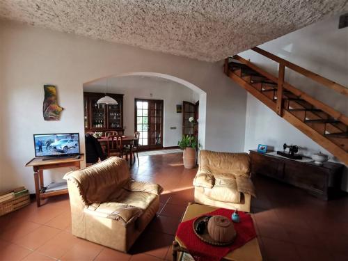 La Villa si sviluppa su due livelli : al piano terra un soggiorno doppio con camino ci accoglie alla nostra entrata, per poi proseguire in una cucina abitabile , un bagno con doccia ed un garage -taverna mentre il piano superiore collegato con un ampia scala in legno si compone di tre ampie camere, un disimpegno, un ripostiglio ed un bagno .