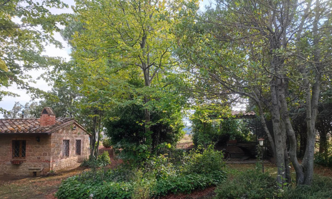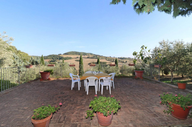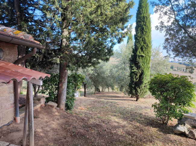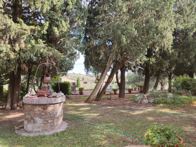 Il Casale è circondato da un ampio giardino, con una splendida vista panoramica sulla campagna circostante e sul borgo medievale di Monticchiello.