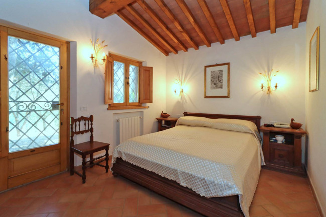 L'arredamento, di classico stile rustico, si fonde perfettamente con gli elementi architettonici tipici della tradizione toscana, come le travi in legno a vista e i pavimenti in cotto.