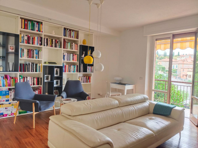 La zona notte è composta da una spaziosa camera matrimoniale con cabina armadio e balcone privato, una seconda camera, e un bagno con doccia. Al piano terra, collegato da una scala interna, troviamo un ampio ufficio ideale per chi lavora in smart working, garantendo un ambiente di lavoro tranquillo e confortevole.